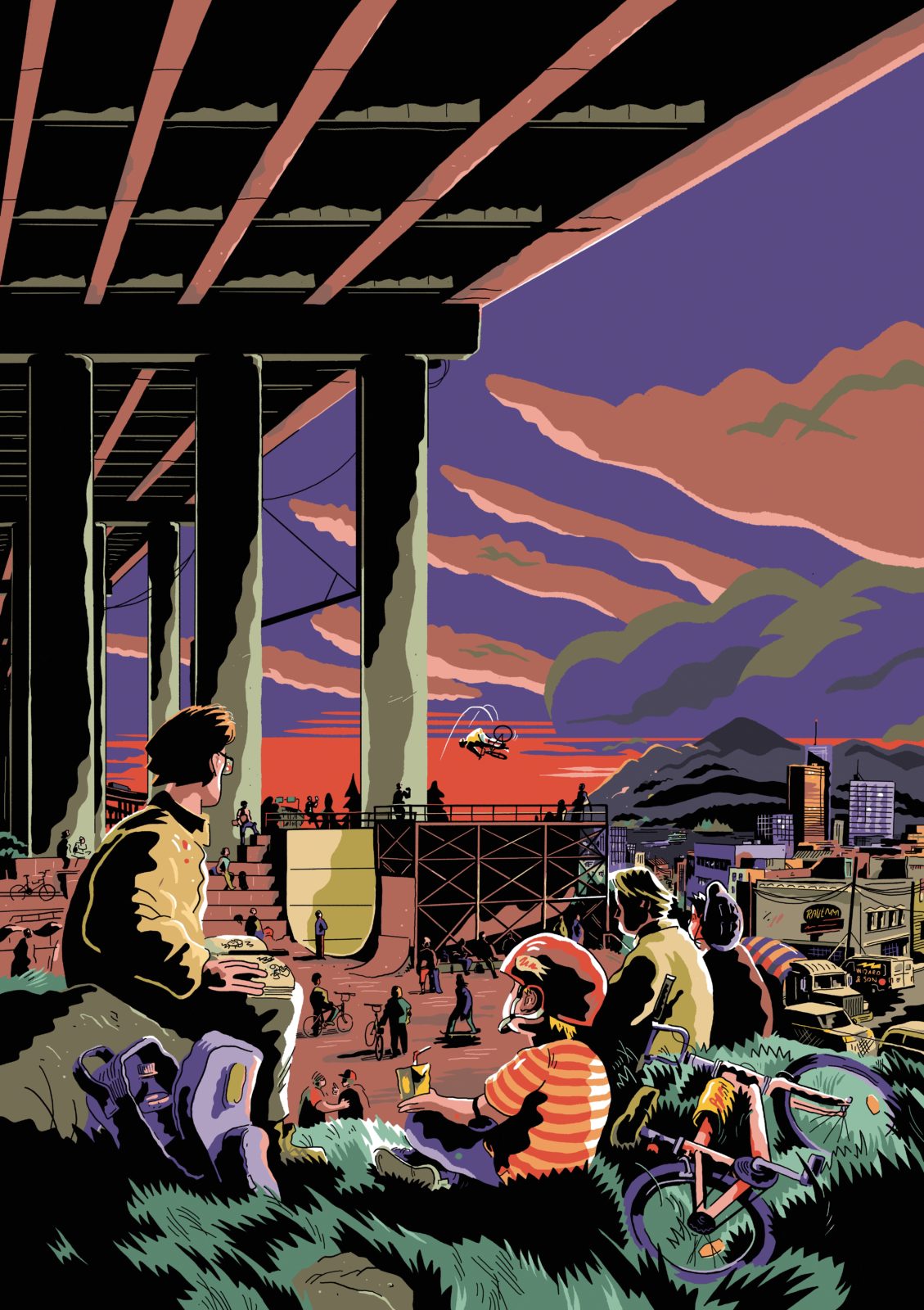Pour notre numéro « Là-Bas », tu as dessiné une scène qui se déroule à Seattle, ville où tu rêverais de retourner. Qu’est-ce qui, dans cette ville, te donne autant envie de dessiner ?