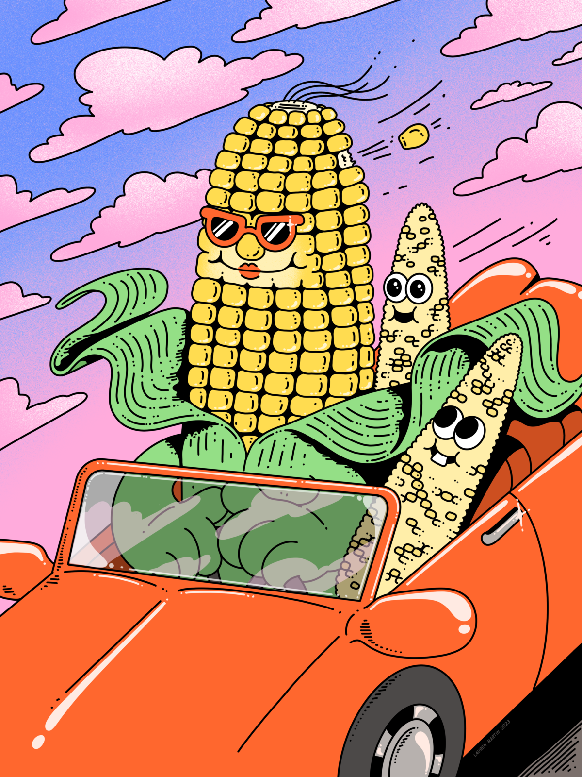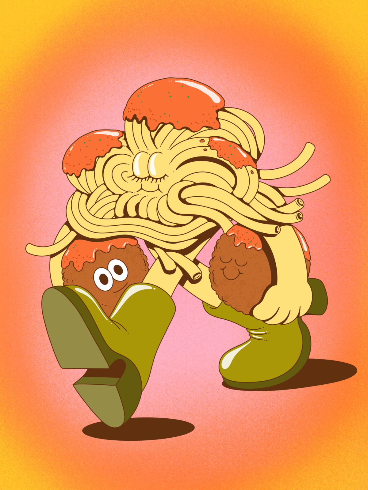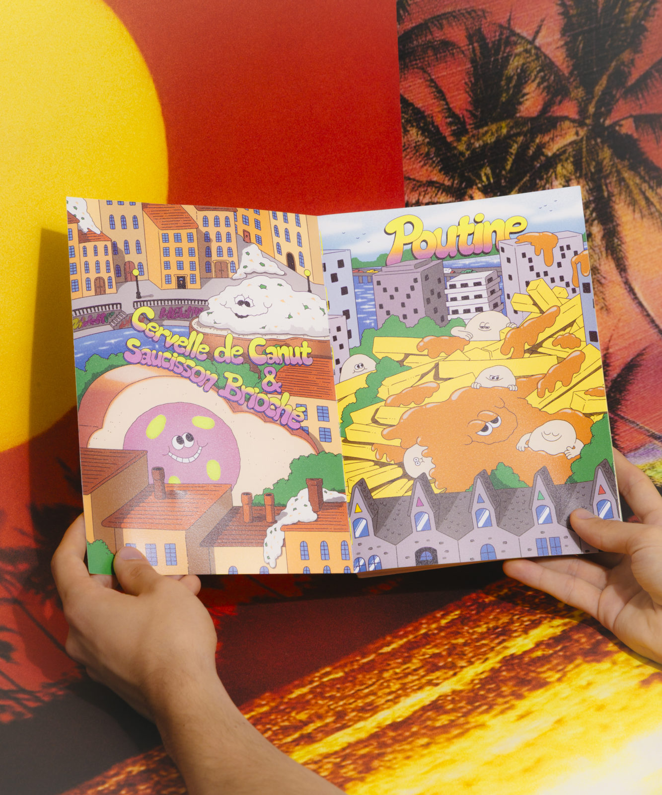 Perdu·es au milieu du grand arbre de l’illustration contemporaine, nous avons trouvé notre sauveuse. Au moment de choisir l’artiste de la couverture de notre numéro “Là-Bas”, nous nous sommes raccroché·es à la branche joyeuse et pétillante de Lauren Martin qui a l’art de faire marcher les sandwiches au pastrami et frétiller les spaghettis à la bolognaise. Grâce à elle, nous avons pu évoquer l’ailleurs avec son attribut le plus appétissant : la bouffe. Et comme on ne voulait pas choisir, nous lui avons demandé 3 couvertures. Rien que ça.