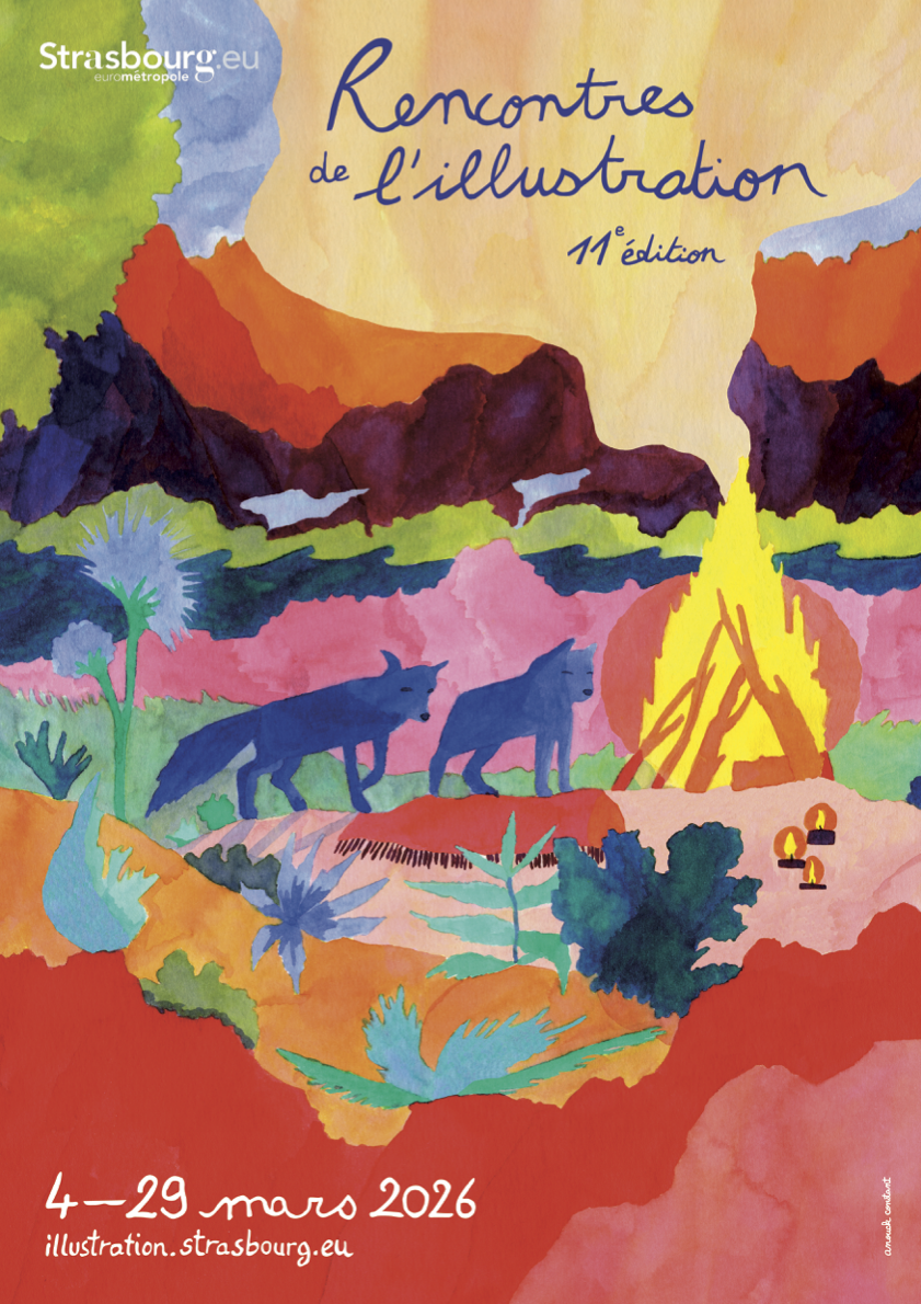 Depuis quelques années, la Ville de Strasbourg ouvre l’affiche des Rencontres de l’illustration à l’imaginaire des artistes de sa programmation, en écho à l’élan créatif qui traverse son territoire. En cela, la Ville réaffirme son rôle historique de soutien aux créateurs et aux créatrices.