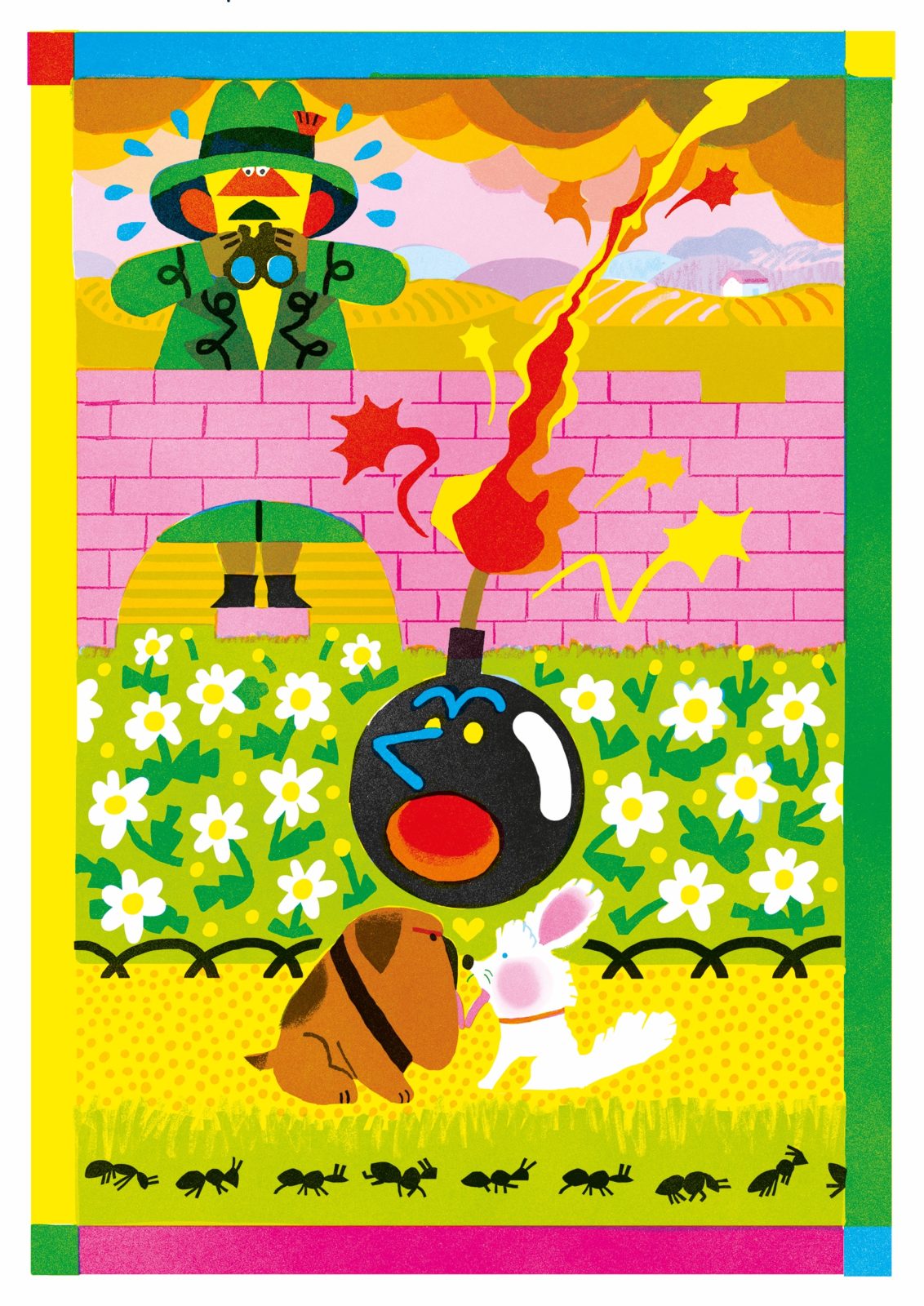 La seconde se poursuit en plein air, sur le quai des Bateliers, au fil du parcours d’affiches de Central Vapeur, confié cette année à l’illustratrice italienne Laura Simonati autour de son album La fête des chiens, paru chez Versant Sud Jeunesse.
