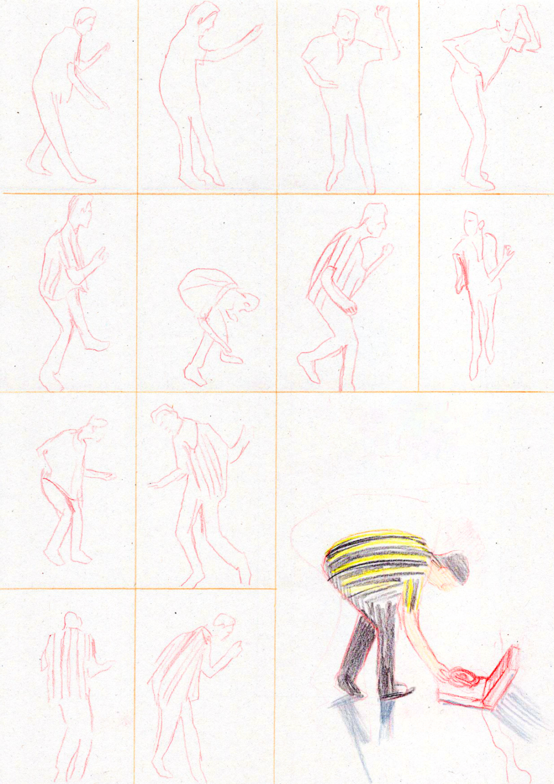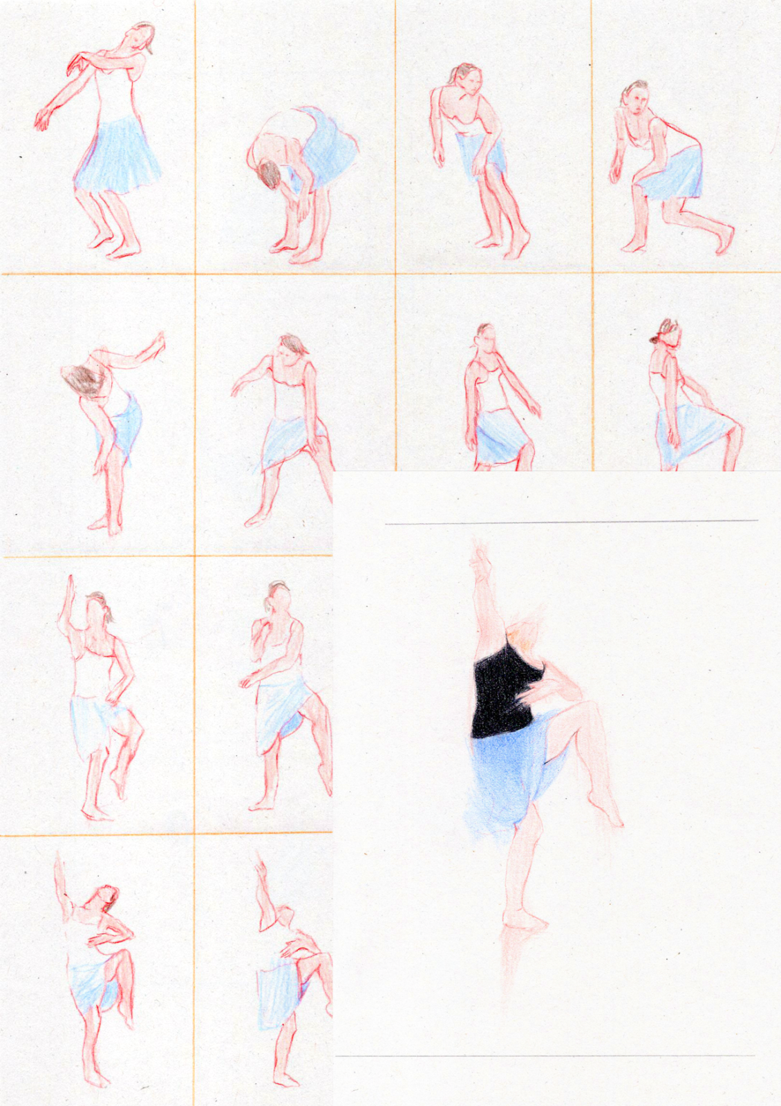 Merci ! La technique du crayon de couleur a été très vite une évidence. Le temps que demande le crayon est important pour moi : il m’oblige à ralentir, à intégrer ce qui n’a pas encore été complètement compris. La décomposition et le séquençage sont venus plus tard. J’aimais filmer de petits gestes du quotidien — me coiffer, danser — puis les retraduire en dessin. J’y ai trouvé une forme de narration silencieuse qui me ressemble. Par la suite, cette structure m’est devenue essentielle.